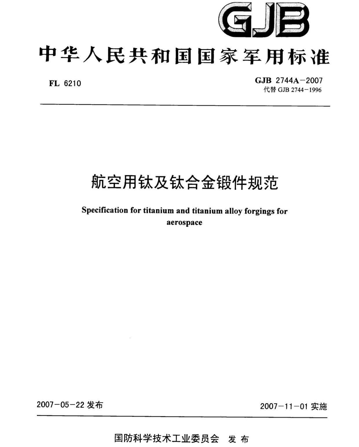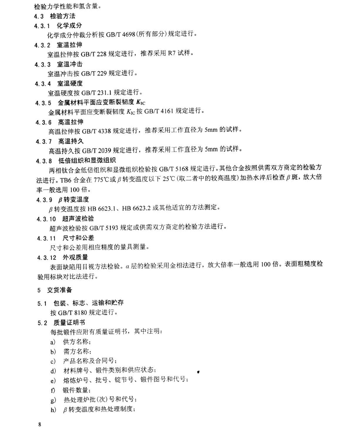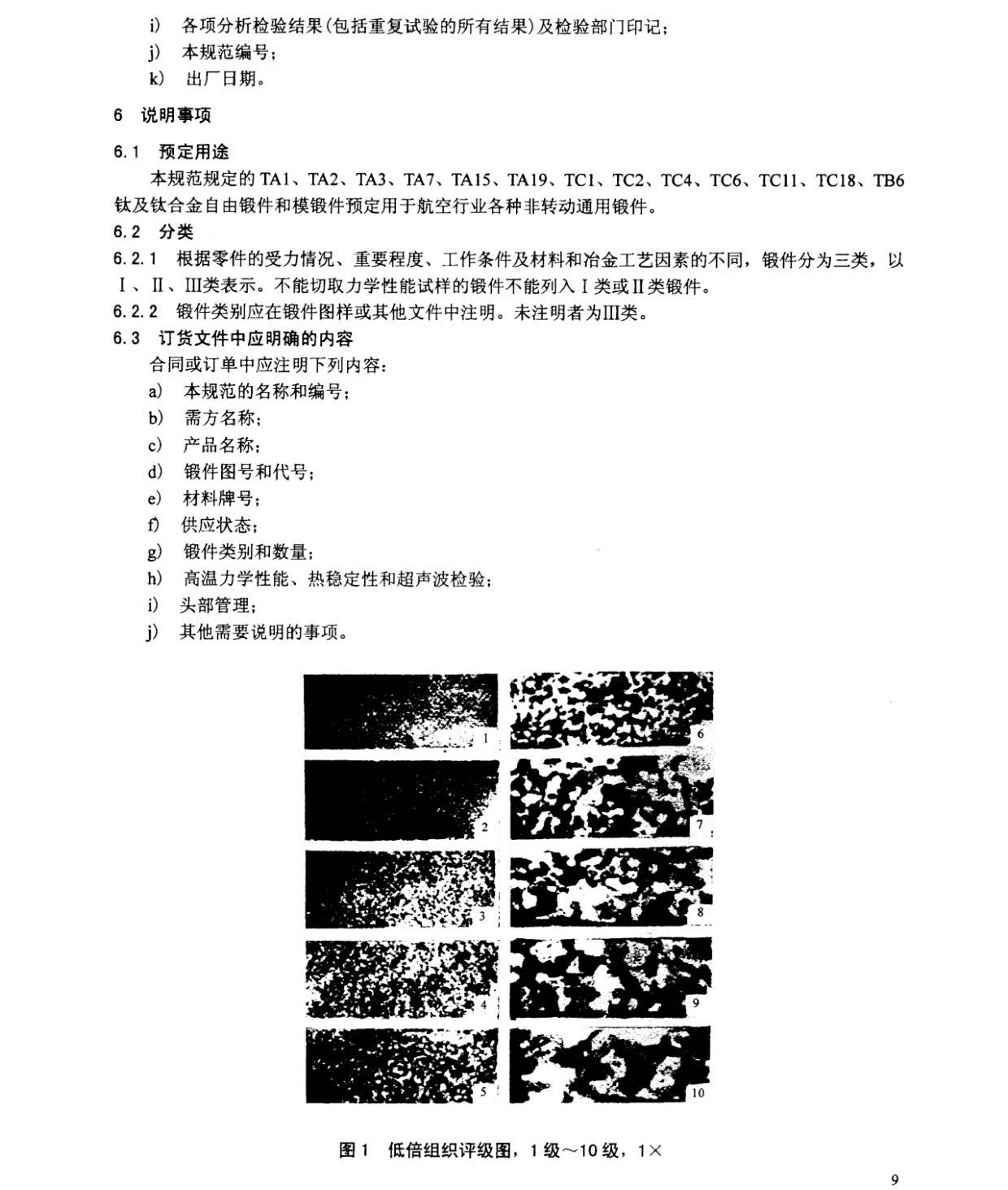 本規(guī)范規(guī)定了航空用TA1、TA2、TA3、TA7、TA15、TA19、TC1、TC2、TC4、TC6、TC11、TC18、TB6鈦及鈦合金自由鍛件和模鍛件(以下簡(jiǎn)稱鍛件)的要求、質(zhì)量保證規(guī)定和交貨準(zhǔn)備等。